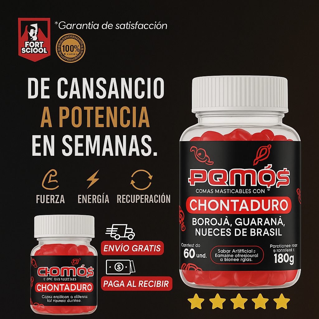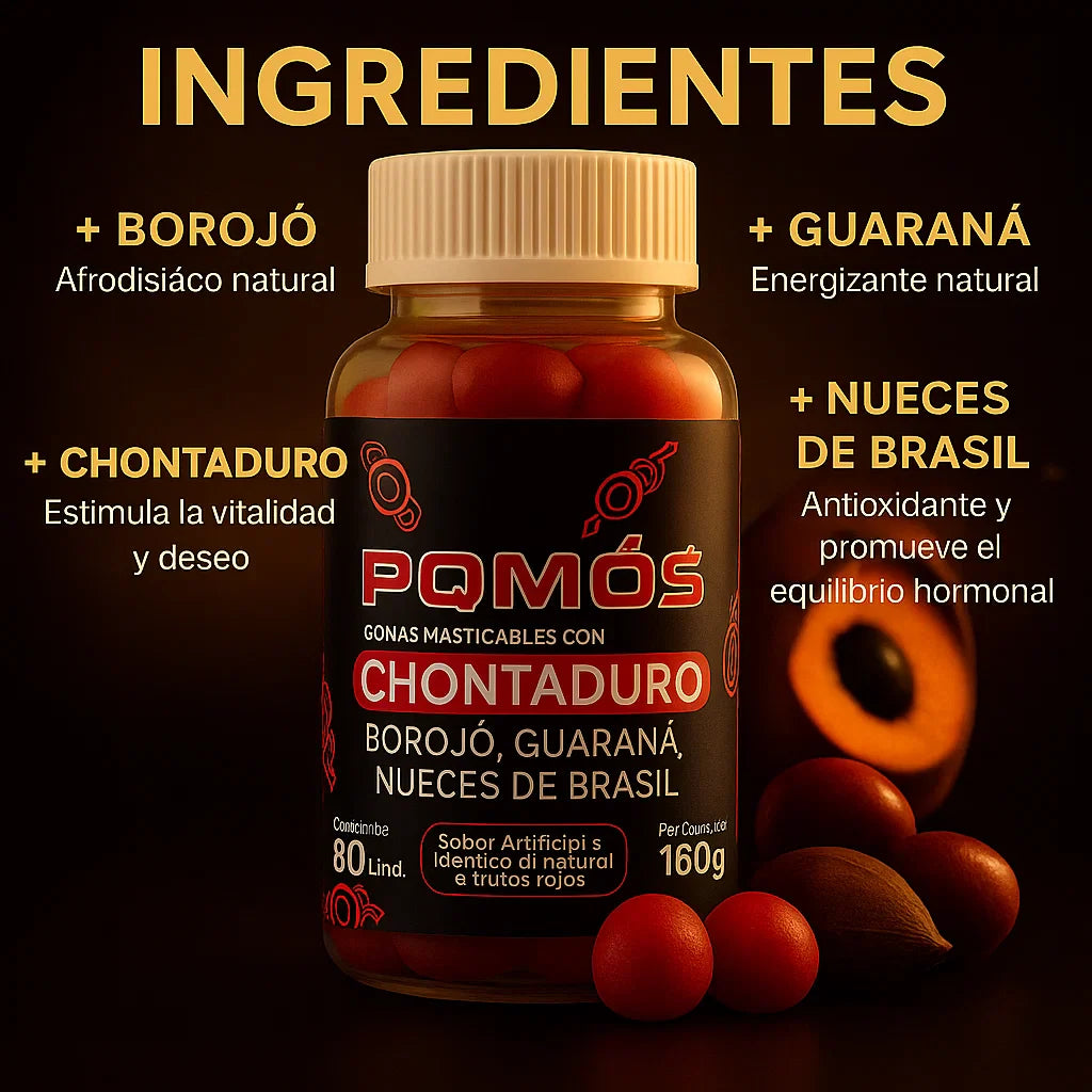 Sí 💪. Su fórmula combina chontaduro, borojó, guaraná y nueces de Brasil, ingredientes naturales reconocidos por su efecto energizante y afrodisíaco. Miles de usuarios ya sienten mayor vitalidad y enfoque desde las primeras tomas.